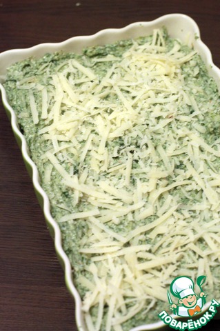 В обычном варианте лазаньи бешамель идет классический (молоко, мука и масло), Оливер же предлагает соединить шпинатно-крабовую массу и бешамель.