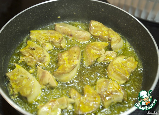 Фуа-гра пускает очень много жира, так что берем кружку и сливаем большую часть.