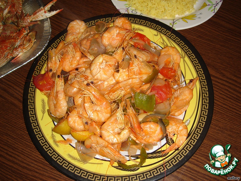 Креветки или крабы, тушенные с овощами