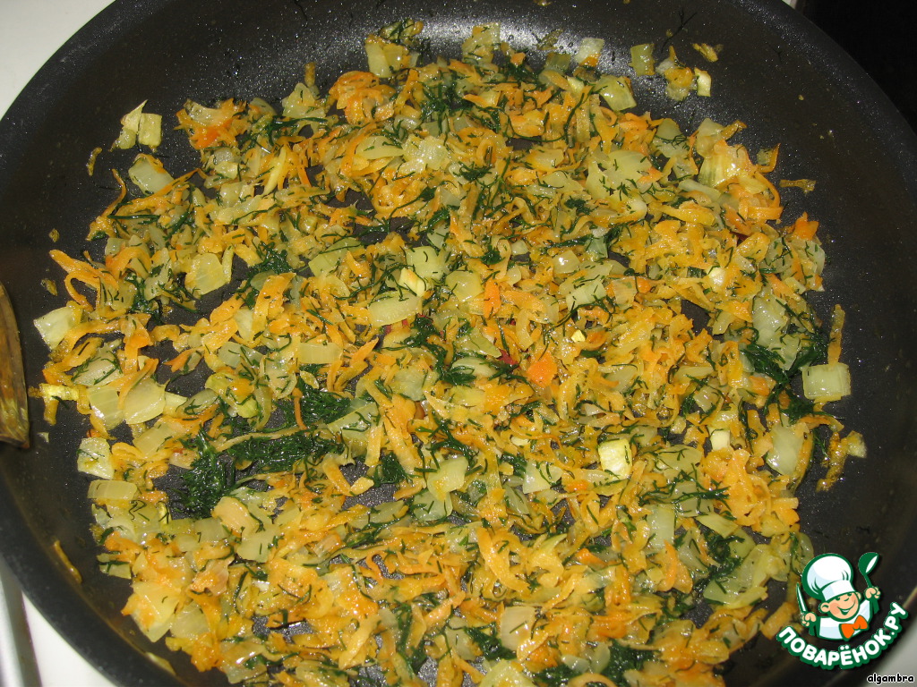 Добавляем морковь, натертую на крупной терке, и обжариваем еще 5 минут.