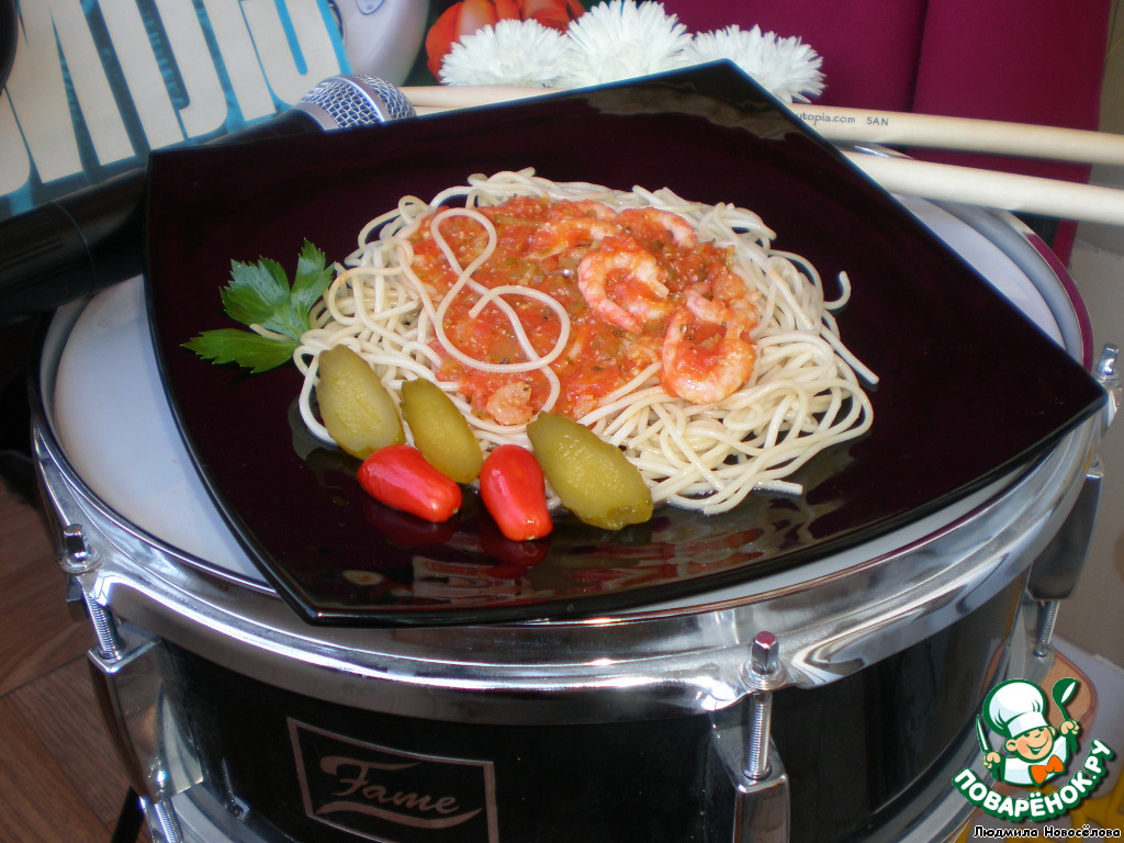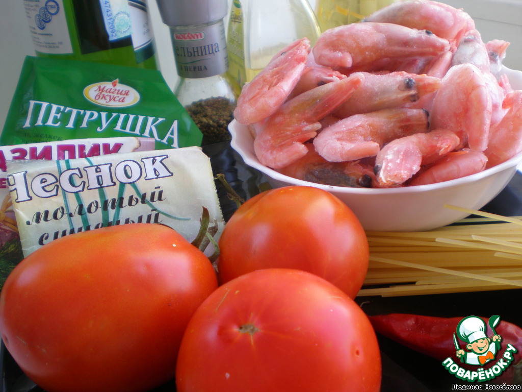 Всё это нам понадобится, а пока отвариваем спагетти. Креветки закладываем в кипящую воду на минутку.