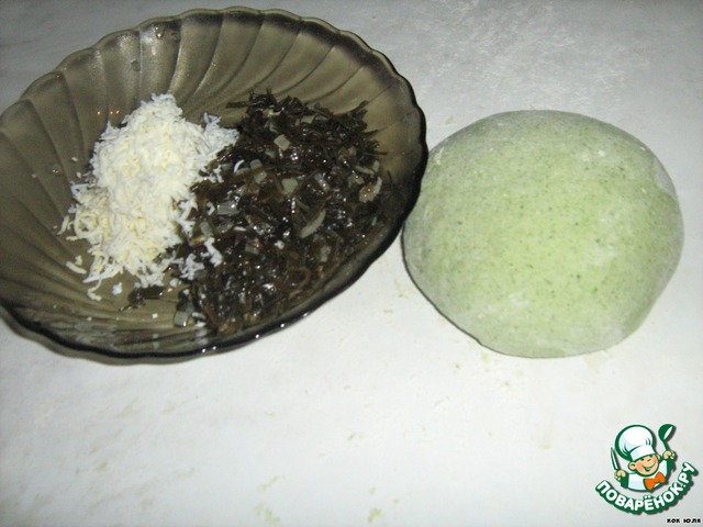 Берем шпинатное тесто п.ф., я описывала приготовление http://www.povarenok.ru/recipes/show/22672/