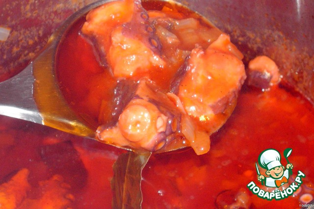чистим осьминога и режем на крупные куски.