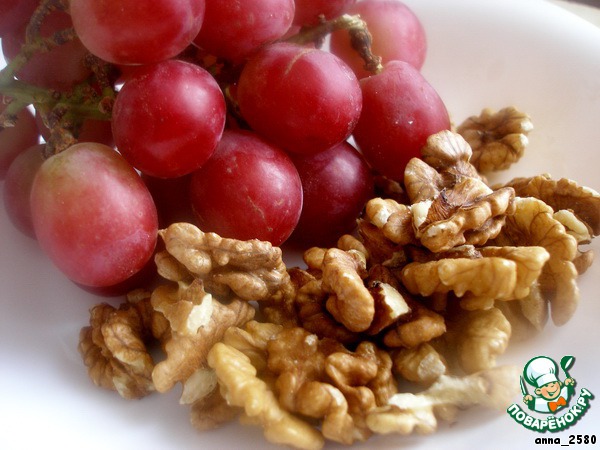 Ягоды винограда опустить на 10 секунд в кипяток и очистить от кожуры.
