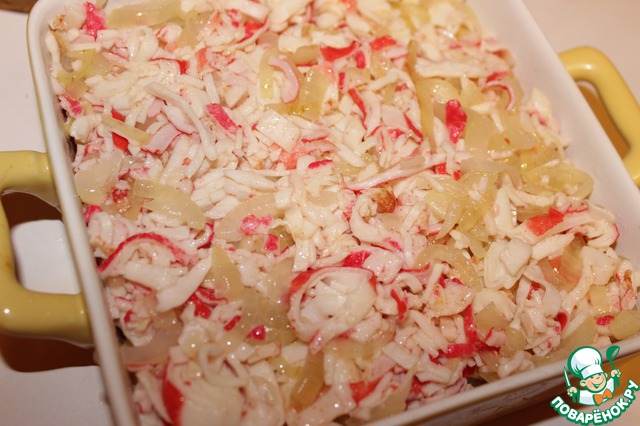| Все таже серия простых и доступных рецептов. На мой вкус мне больше нравятся обжаренные крабовые палочки, особенно с лучком. |