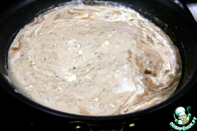 Затем добавить сметану, посолить, поперчить и готовить еще 2 минуты. Если соус получается очень жидким, то можно добавить чуть-чуть муки.