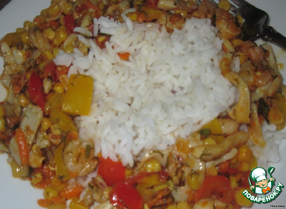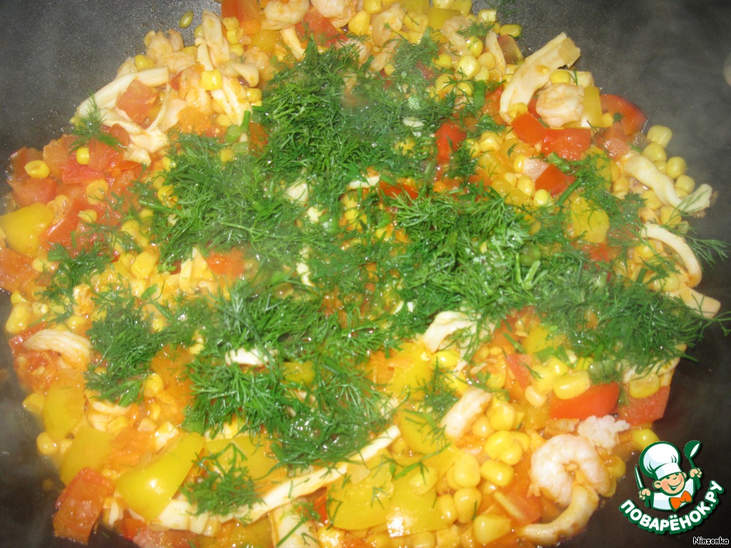 Рагу из овощей с кальмарами и креветками