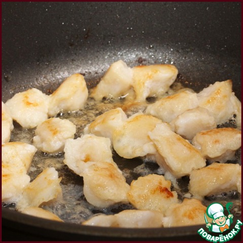 Обжарить гребешки до легкого румянца по 1 минуте с каждой стороны. Обжаренные гребешки удаляем из вока.