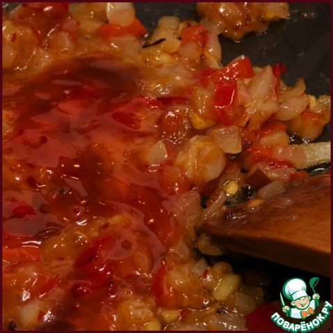 Измельчить мелкими кубиками лук, чеснок, имбирь, паприку.