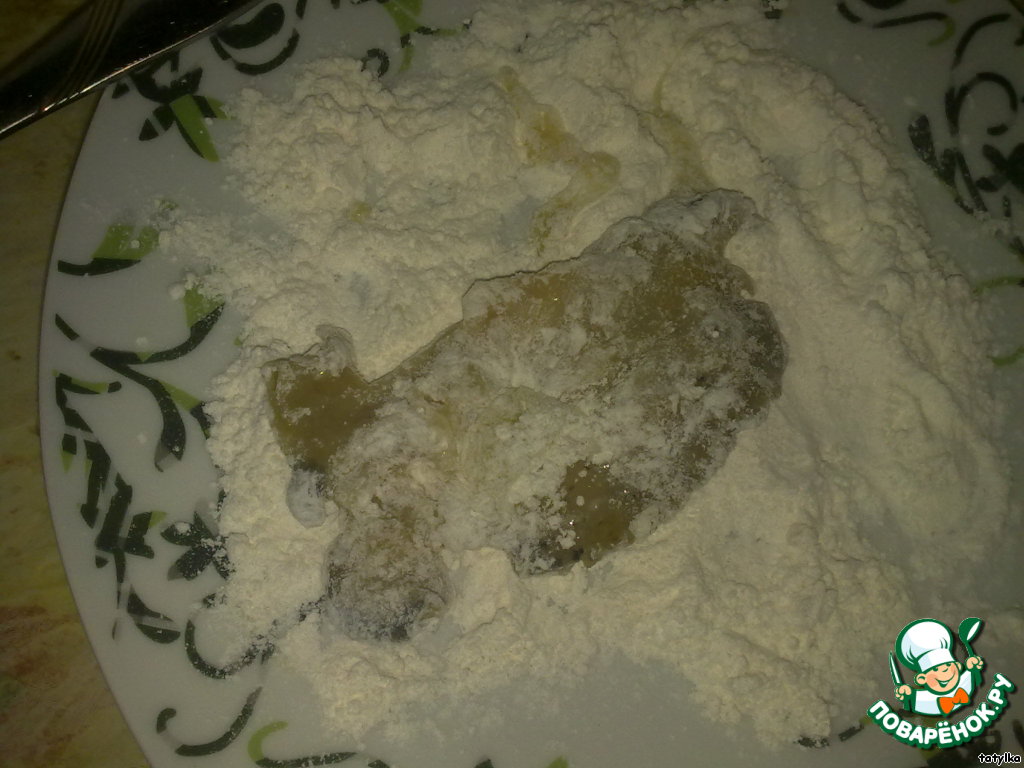 Половину рапанов, поочередно, обваливаем в муке с двух сторон.
