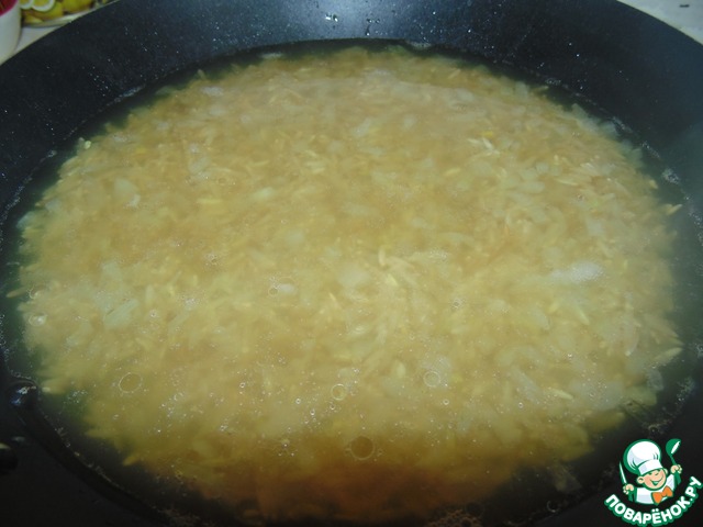 К луку всыпать рис (у меня 2 пакетика по 80г.).