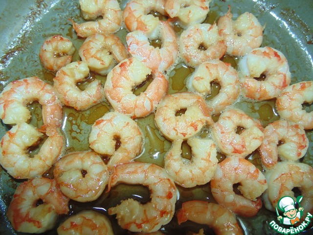 Перевернуть креветки на другую сторону и сразу выключить огонь.