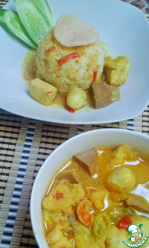 Итак, блюдо подаётся к рису! Предварительно выловите имбирь и лемонграс. Обязательно попробуйте, это очень вкусно!!