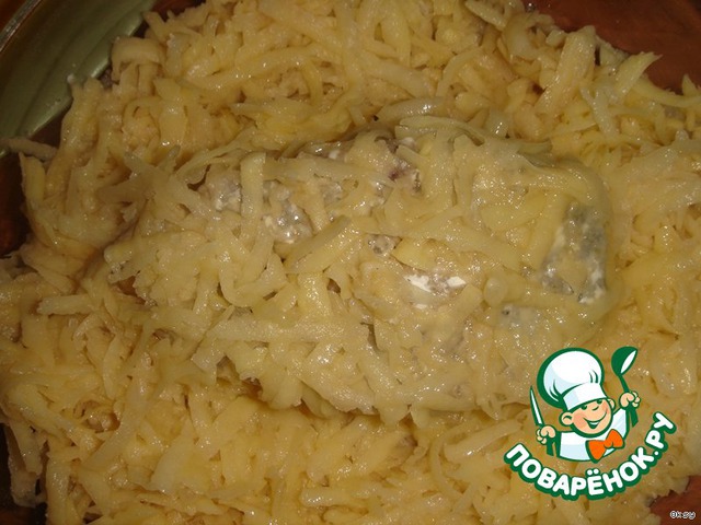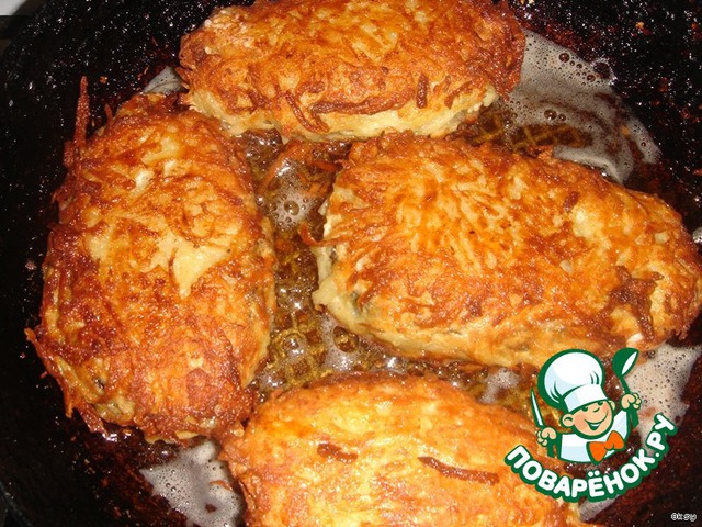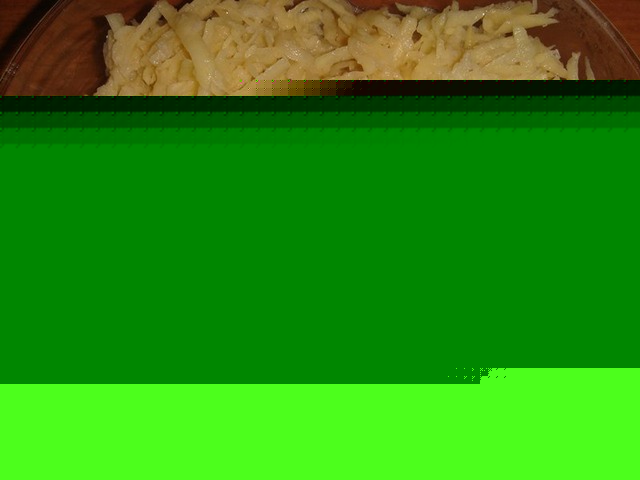Картофель потереть на крупной терке, посолить. Если картошка сочная, то отжать сок, но не сильно.