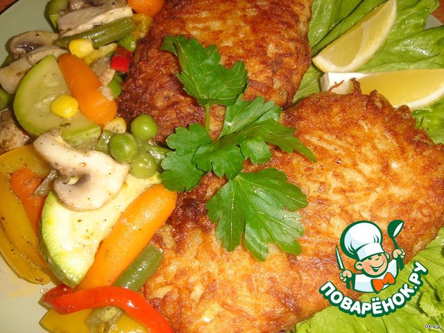 | Рыбка в очень вкусной панировке из картофеля. Практически "два в одном" - рыбка с гарниром. |
