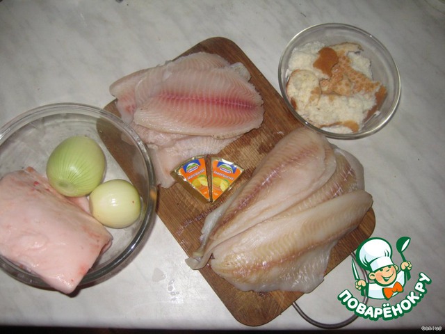 Особый вкус нашим котлеткам придает свиное сало, и сразу хочу оговориться: не стоит опасаться сочетания рыба/сало, оно в этом блюде СОВЕРШЕННО не чувствуется!)) Итак,