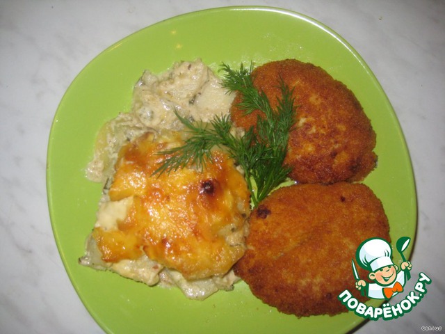 Подавать с любым гарниром, я свой позаимствовала у GadenKa (http://www.povarenok.ru/recipes/show/14947/ - спасибо ей большое за эту картофельную вкусноту:)))