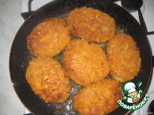 жарим на оливковом масле до румяной корочки с двух сторон, доводим до готовности на маленьком огне ещё минут 10-15