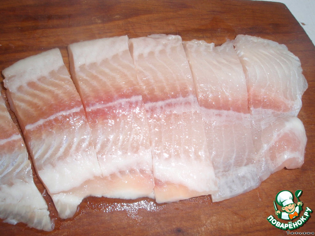 Рыбу нарезать на кусочки. По рецепту надо минтай, я пробовала с минтаем, хеком, а вот сегодня захотелось мне сома еще испытать.
