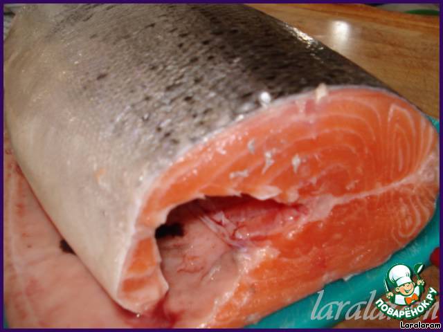 Так вот, рыбка была куплена свежайшая - кабанчик эдакий на 4 с копейками кг... Красавица! Мы с мужем и электроножом (и электро-пила "Дружба" сгодилась бы...) побороли эту рыбу совместными усилиями, разделив её на 3 неравномерных кучки: что на суп, что пожарить и на филе... И до того она хороша была - рыбка-то! что захотелось её ещё краше сделать, знаете, меня всегда немного расстраивало, что рыбка немного теряла в цвете процессе маринования, бледнела... И тут мне вспомнилось, что в старину на деревне девушки румянец наносили (чем, знаете?) - ага, свёклой! И кто-то из наших кулинарчиков уже прибегал к её услугам… Вот отсюда и получилась красная "красная" рыба!