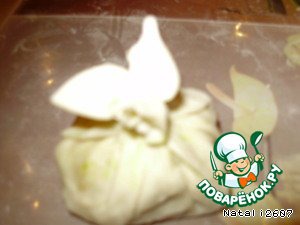Затем поднимаем края теста и защипываем мешочком.