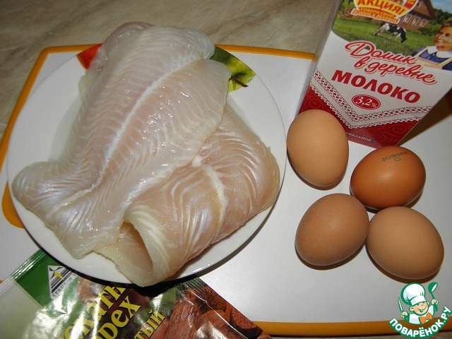 Соединить рыбу и яично- молочную смесь, перемешать, добавить специи по вкусу