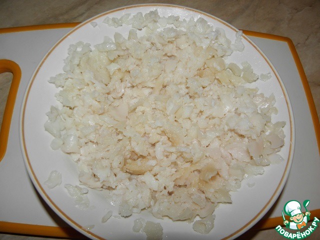 Рыбу отварить в течении 6-7 минут, разобрать на маленькие кусочки ( я это вилкой делаю)