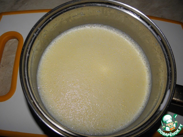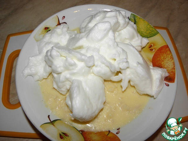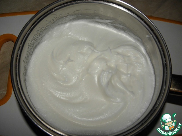 Охлажденные белки взбить до густой пены с щепоткой соли