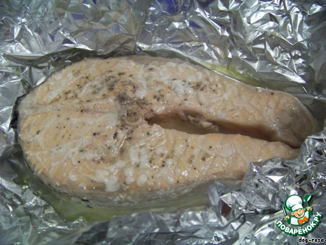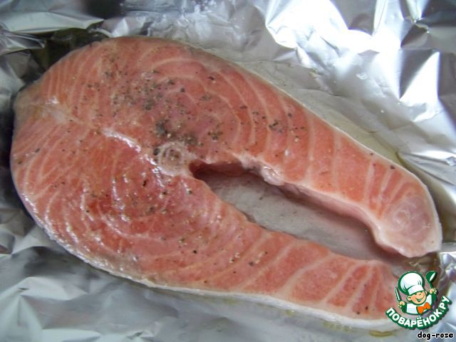 Вот так выглядит готовая рыба (фольгу разворачиваем очень осторожно, чтобы не обжечь паром руки!)