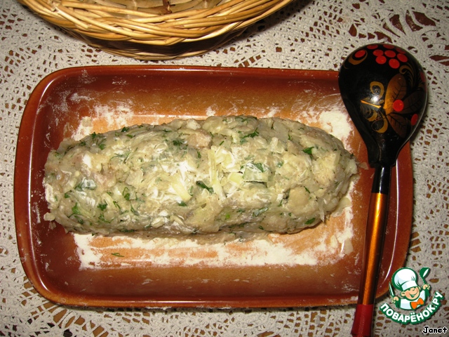 Перемешать с пряностями и зеленью, затем добавить яйцо, 1 ст. ложку муки,