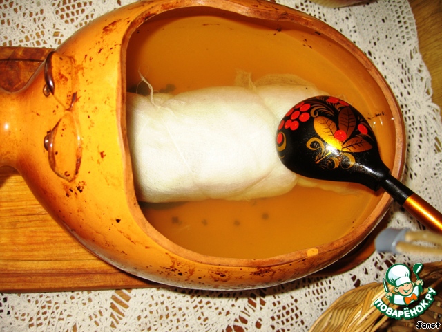 В подготовленную кипящую воду опустить тельное в салфетке. В старину брали и рассольно-водную смесь с пряностями и отваривали последовательно несколько порций рыбы.