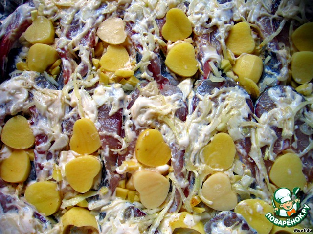 Теперь по два картофельного сердечка на каждый рыбный кусочек