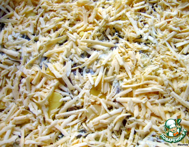 Готовим в разогретой до 200С духовке где-то около часа... сырная корочка должна стать красивого золотистого цвета