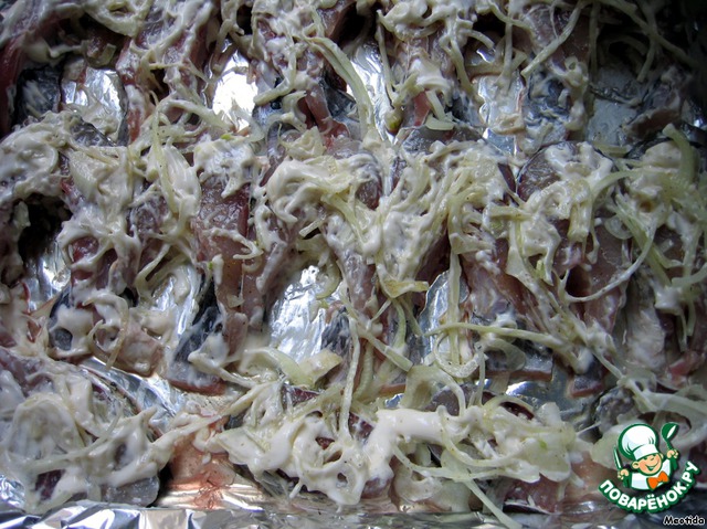 после этого нарезаем кусочками, солим, перчим и выкладываем на противень