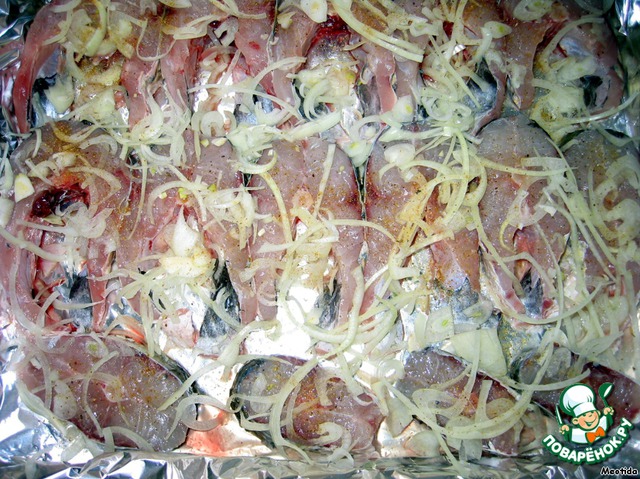Рыбку надо хорошенько почистить от чешуи... освободить от внутренностей, вынуть жабры, отрезать голову, хвост и плавники...