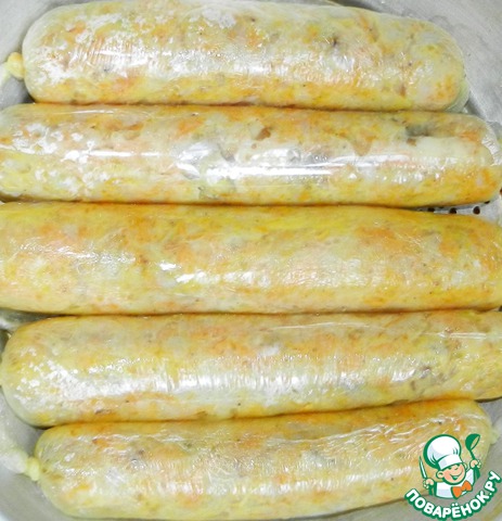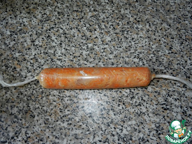 Сформовать колбаску и завернуть в плёнку.