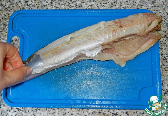 Почистить и помыть рыбу. У меня были 2 большие тушки. Вес рыбы в игредиентах дан без учёта костей, тоесть только филе, чтобы легче было сориентироваться. У нас филе не очень хорошего качества.