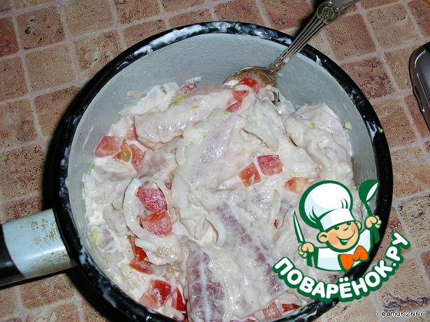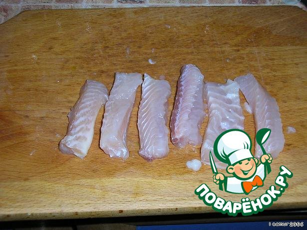 Выложить в сковороду. Я ее не смазывала, т. к. рыба у меня была морской язык, а она достаточно жирная.
