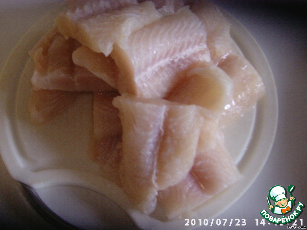 Филе любой рыбы нарезать, вымыть, обсушить.