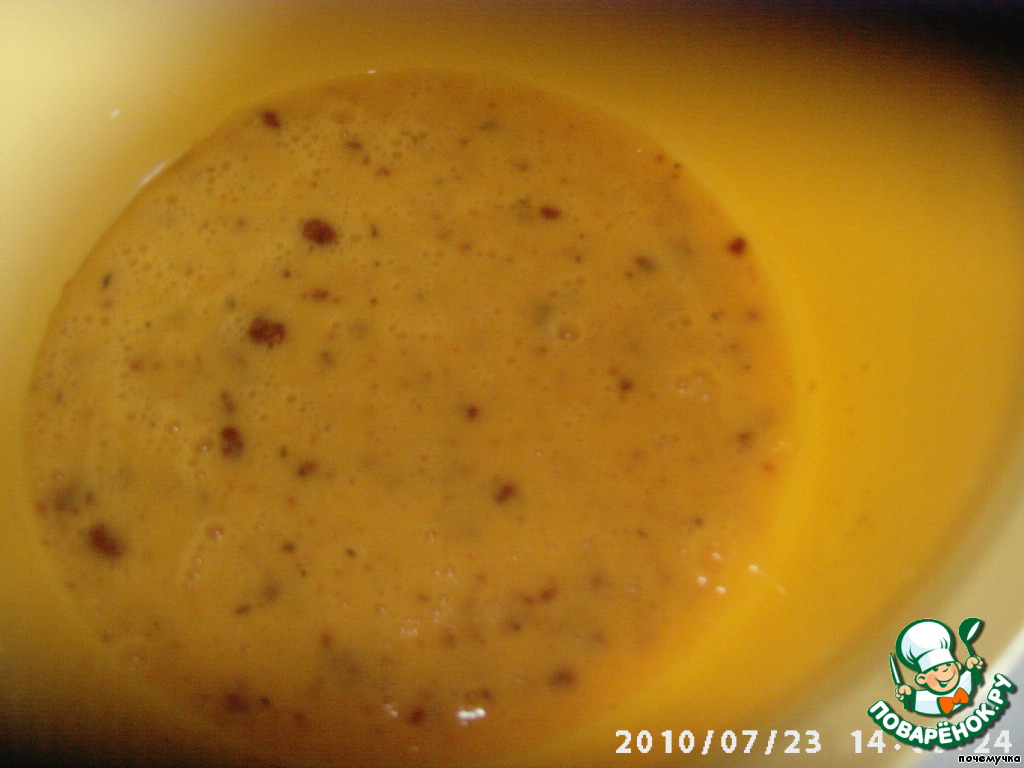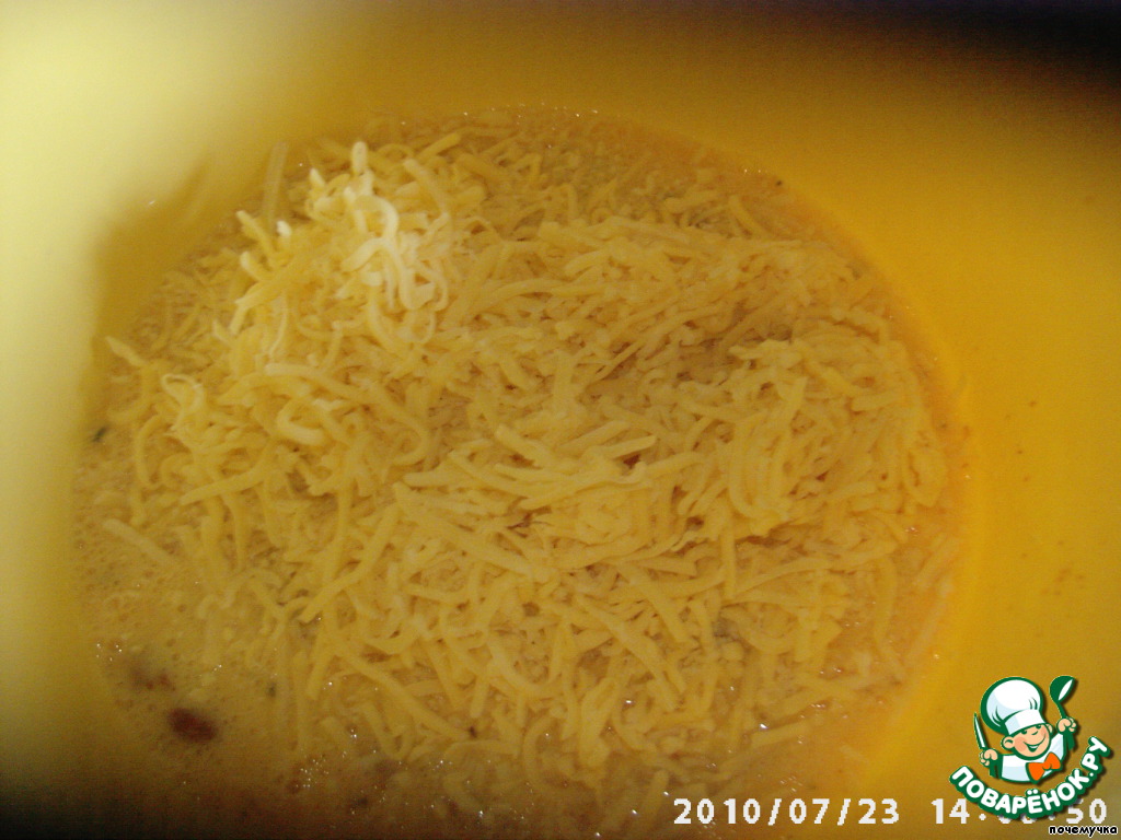Приготовить кляр: сыр натереть на мелкой терке и смешать с взбитыми яйцами, посолить и приправить.