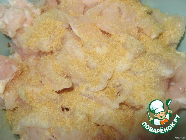 Смешать рыбу, крабовые палочки, специи, сухой желатин.