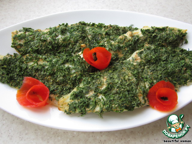 Нежнейшая рыба в ароматной зелени готова. Пусть эта рыба не совсем фотогенична, зато очень вкусна!