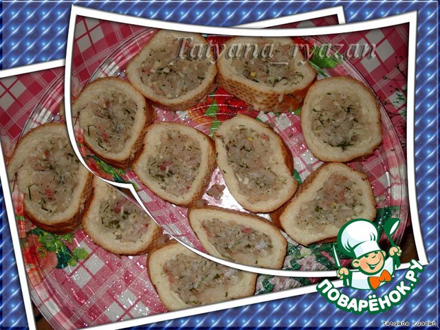 Батон нарезать на кусочки толщиной примерно 2 см.