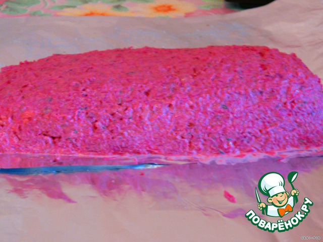 Накрыть второй половинкой рыбы , сверху – свекла и замазать с бочков, сформировав полено. Вот как-то так…