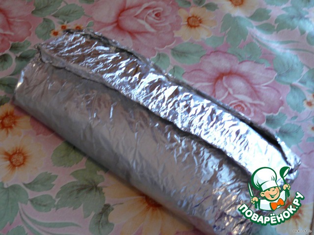 Готово! Рыбка вкусная и в горячем и холодном виде. Если Вы собираетесь подать ее горячей, не стоит выкладывать на блюдо сразу ( велик шанс, что «полено» развалиться), нужно развернуть фольгу и подождать минут пять. Мне больше нравится второй вариант, здесь вообще просто – остужаем прямо в фольге( форма «полена» хорошо сохранится).