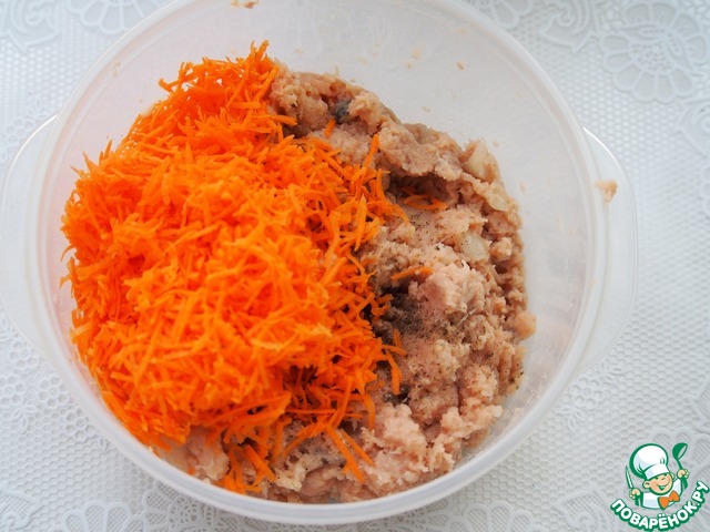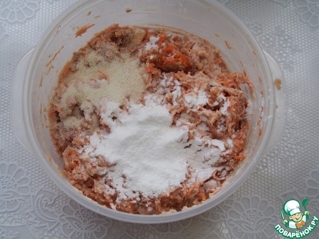 Далее добавить соль (1/2 ч. л.), перец, муку, сметану и панировочные сухари. Хорошо перемешать.