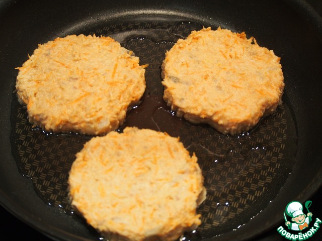Из полученной массы сформировать лепешки и обжарить в оливковом масле с двух сторон минут по 5-7, на среднем огне.