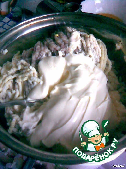 Готовую сельдь пропустить через мясорубку вместе с яйцами и сырками