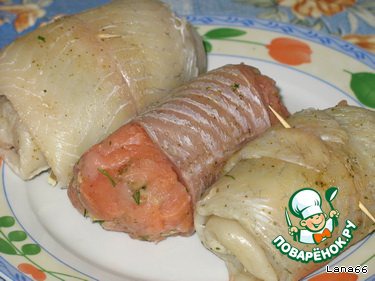 Рулетики рыбные с сырно-грибной начинкой