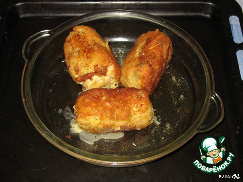 Затем рулетики перекладываем на смазанную (тем же маслом в котором они жарились) форму и отправляем на 15-20 минут в разогретую духовку.